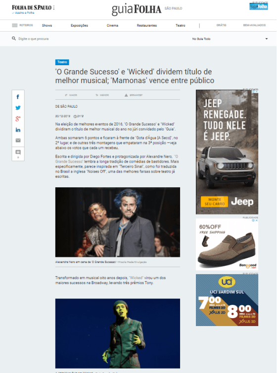 Matéria publicada pelo Guia da Folha em dezembro de 2016. Confira a matéria completa: http://guia.folha.uol.com.br/teatro/2016/12/o-grande-sucesso-e-wicked-dividem-titulo-de-melhor-musical-mamonas-vence-entre-publico.shtml