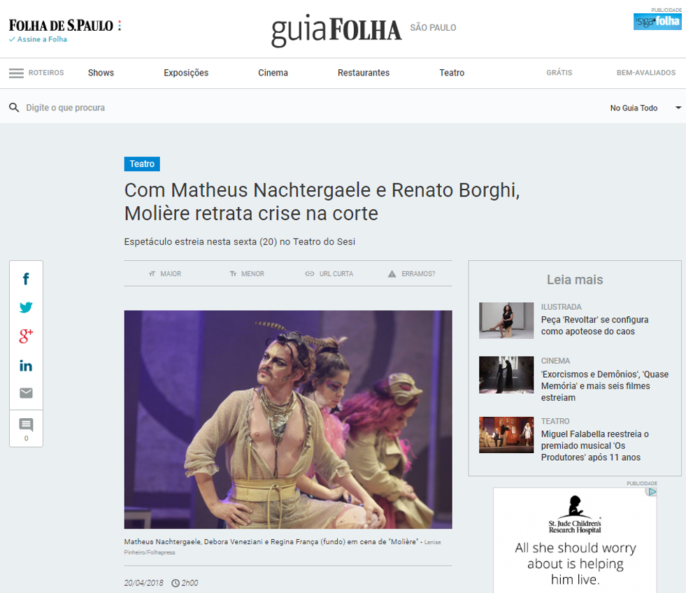 Matéria publicada no Guia da Folha de São Paulo no dia 20 de abil de 2018: https://www1.folha.uol.com.br/ilustrada/2018/04/peca-com-matheus-nachtergaele-aborda-ascensao-do-moralismo.shtml